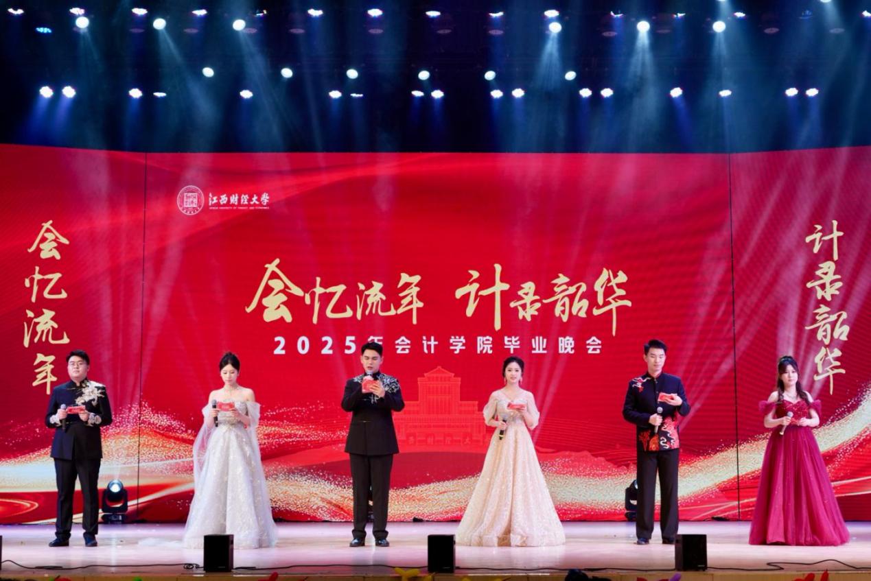 为给毕业生留下专属青春回忆,传递学院的深切关怀与美好祝福,5月11日晚,会计学院于蛟桥园大礼堂举办“会忆流年,计录韶华”会计之声文艺晚会。晚会特邀南昌市青云谱区团区委副书记祝梦悦、挂职副书记游智慧出席,会计学院党委书记黄文德、党委副书记肖安生、副院长李世刚、教务办主任师华、研工办主任曾海龙、全体辅导员、毕业班班主任与2025届毕业生共同观看晚会。