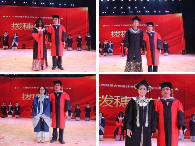 拨穗仪式上,李世刚为毕业生代表逐一拨穗。拨穗正冠,代表麦穗或稻穗成熟,象征着毕业生们已学有所成,可展翅高飞,前往更加辽阔的天地。拨穗正冠,奋起远航,十载寒窗求索,百年薪火相传。
