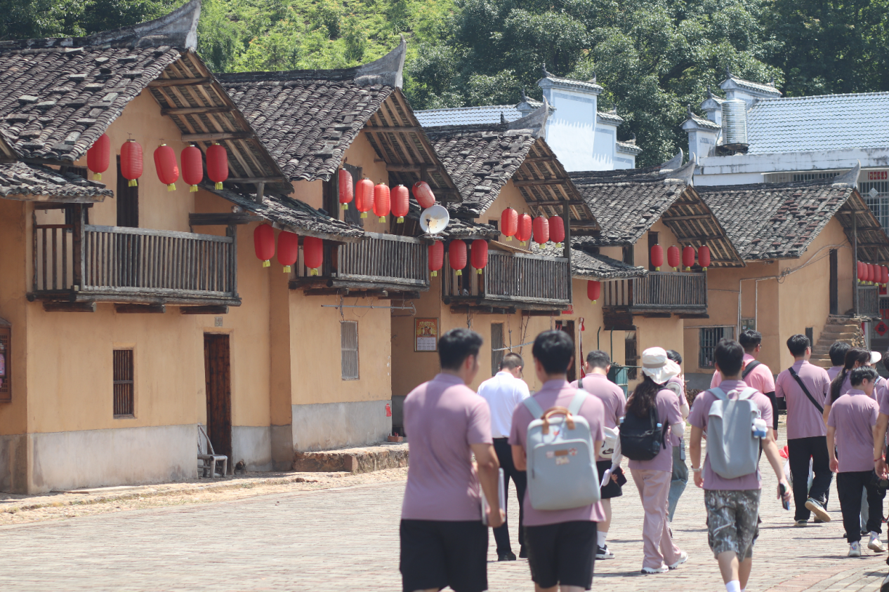 实践团走进华屋红军村,聆听村干部介绍党的十八大以来,华屋村抢抓政策机遇,通过苦干实干,实现了从“安居梦”到“致富梦”“健康梦”的历史性跨越。在新旧村址的交界处,7栋斑驳古朴的土坯房无声诉说着过往;百米之外,66栋白墙黛瓦的客家新居依山而建,生动勾勒出新时代乡村的美丽画卷。眼前这翻天覆地的变化,让实践团成员们深刻感受到党和国家推进乡村振兴战略的强大力量,也更加坚定了他们运用所学专业知识服务乡村发展的青春志向。