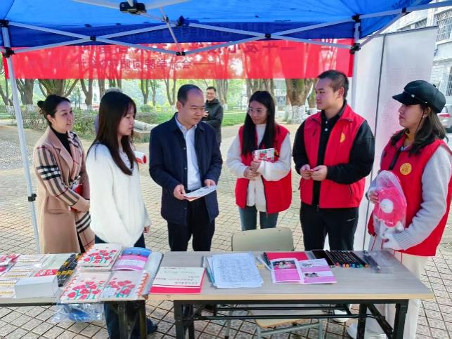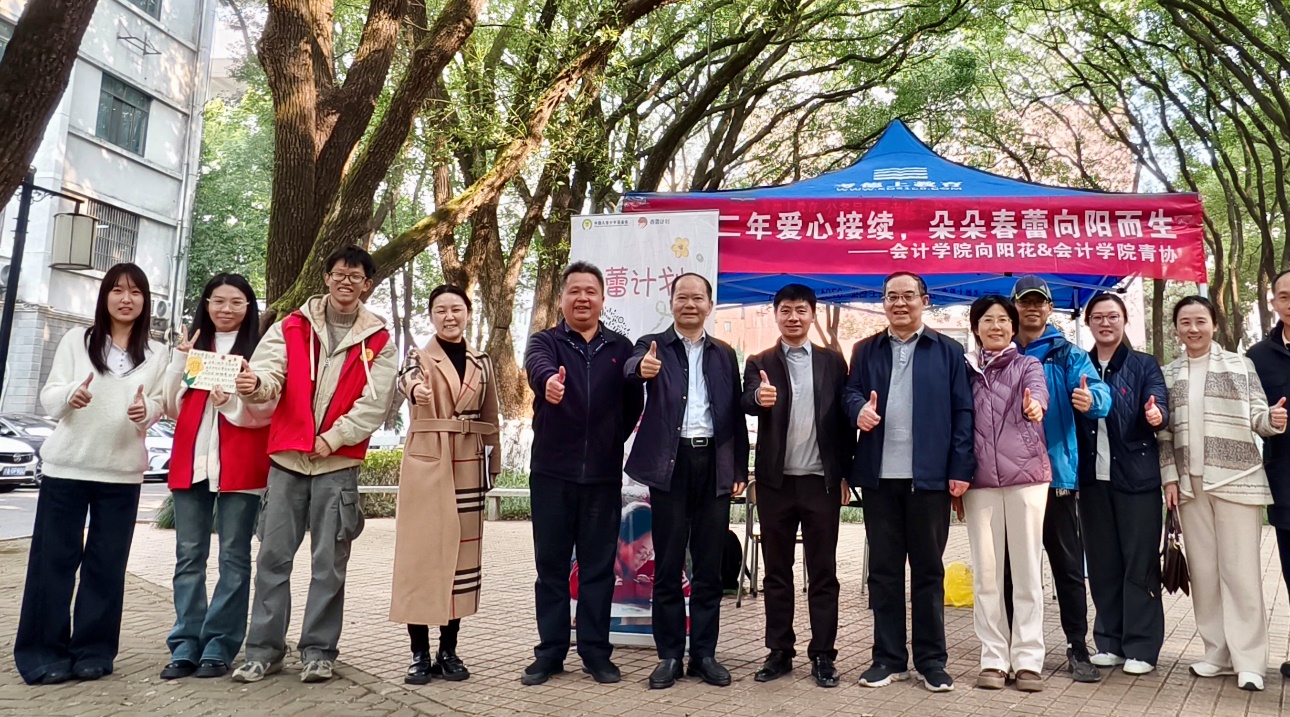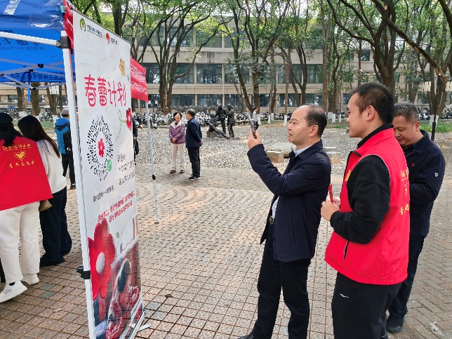 李春根还来到会计楼前的广场,指导由会计学院向阳花青年先锋队组织开展的“春蕾计划”公益活动,慰问在场志愿者们,与他们亲切交流,并一同参与捐款活动。