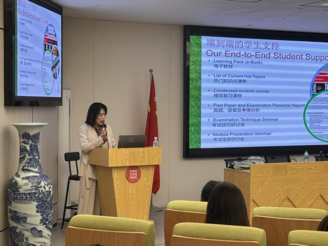 在QP考试项目解读环节,李莹老师从优势、豁免方案、备考策略及资源支持四个维度展开,着重强调QP考试实操导向的特色,并具体说明香港会计师公会官方学习资源对备考效率的提升作用。交流互动中,学子围绕QP考试相关问题积极提问,李莹老师细致地逐一解答,现场气氛热烈。
