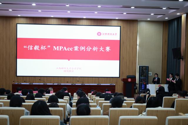 12月21日晚,会计学院“信毅杯”MPAcc案例分析大赛决赛在研究生院学术报告厅举行。大赛邀请了江西省地质局财务处二级调研员刘军、国旅文化投资集团股份有限公司财务总监李文才、江西建工第一建筑有限责任公司董事兼财务总监刘云飞、江西省人民医院运营部副部长兼高级会计师王苏婷担任评委嘉宾。江西财经大学会计学院副院长李世刚、团委副书记王鹏、辅导员李喆歆出席大赛现场。