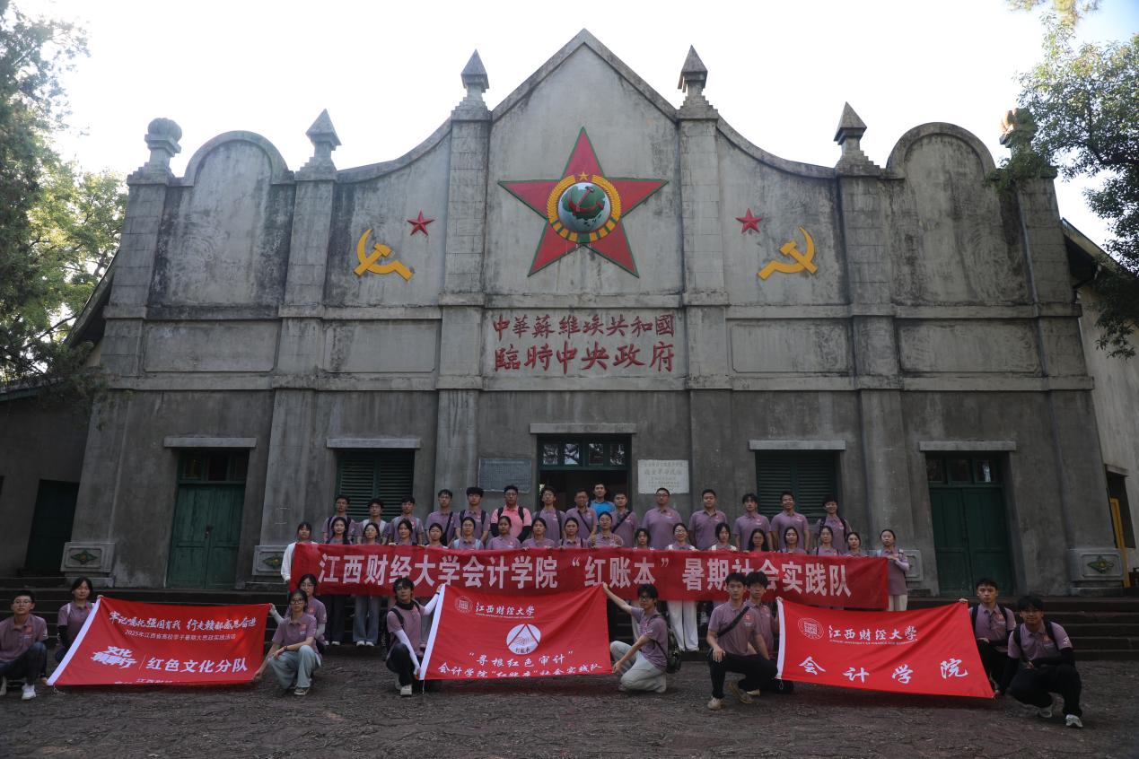 2025年暑期,会计学院“红账本”先锋队在院团委书记娄玮、团委辅导员熊世秋带领下,以“寻根红色审计,赋能乡村振兴”为主题,深入赣鄱大地开展社会实践活动。在红色故都瑞金,团队围绕苏区时期审计制度建设、经费管理监督等内容开展专题调研,深入挖掘红色审计的历史脉络、制度成果与精神内涵,并进一步探讨其对当前基层财政资金监管、乡村治理现代化的借鉴意义。此外,团队还通过实地走访红色遗址场馆、访谈基层工作者、与村民深入交流等方式,系统调研了金溪县农村红色文化资源的分布、保护现状及开发路径,重点关注红色遗址修缮、展陈创新、文旅融合等方面的成效与突出问题。