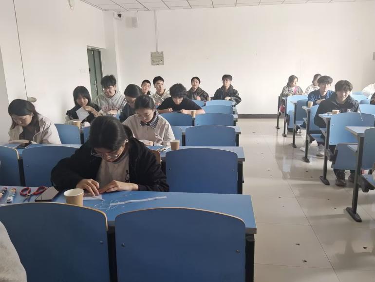在手工纸鸢制作环节,同学们以废旧卡纸、竹签等为材料,设计骨架、粘贴纸张、添加尾巴、绘制装饰,制作承载 “放晦气、迎春光” 美好寓意的迷你风筝。在动手实践中,大家体验传统手工艺乐趣,让非遗技艺以青春姿态焕发新活力。
