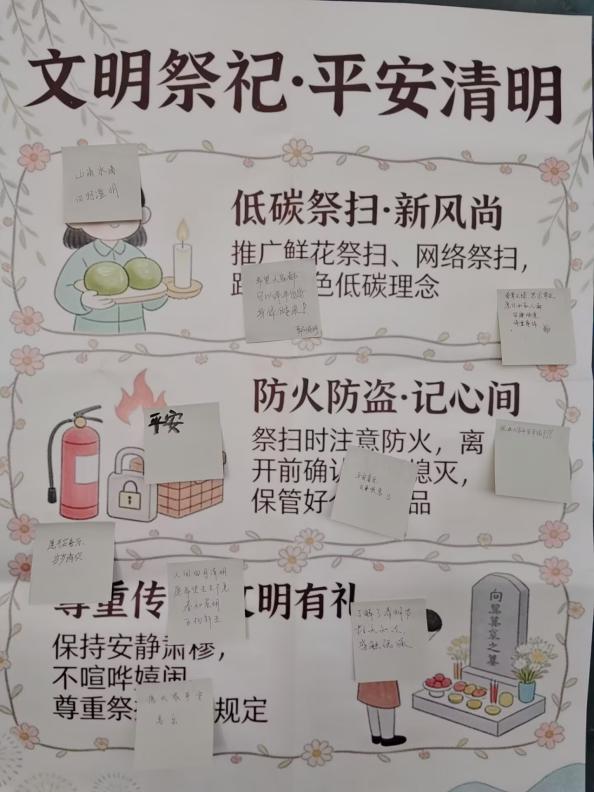 此外,活动特别设置了文明祭扫承诺签名环节。同学们依次在海报上签名,共同倡导鲜花祭扫、网络祭扫、家庭追思等文明缅怀方式,拒绝封建陋习,树立健康向上的节日理念,用实际行动践行绿色清明。