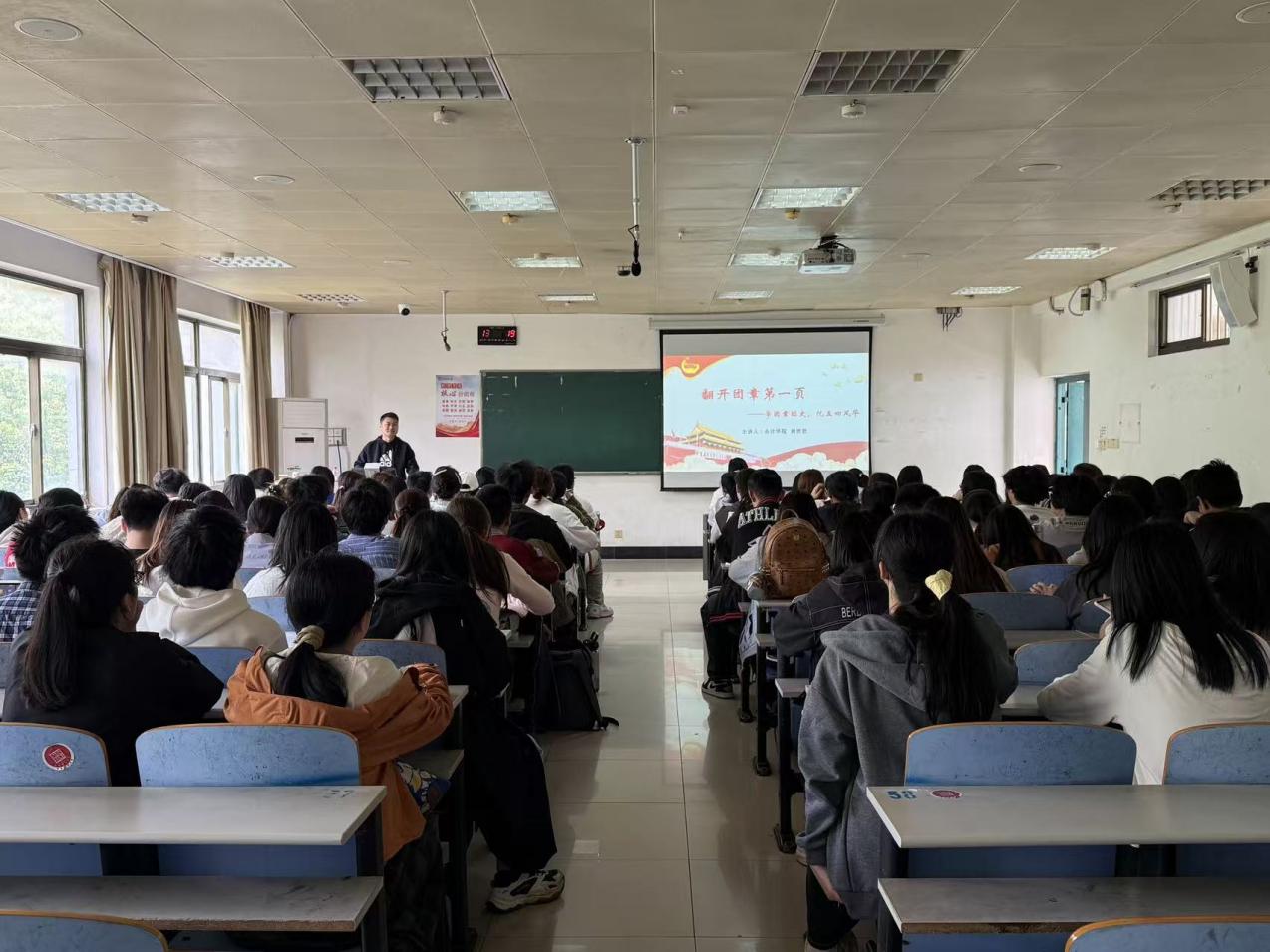 为深入推进入团积极分子培养教育,引导青年学生厚植家国情怀,4月24日下午,会计学院入团积极分子培训第三讲专题团课在蛟桥校区第五教学楼顺利举行。本次团课以“翻开团章第一页——学团章团史,忆五四风华”为主题,由会计学院团委辅导员熊世秋主讲,全体入团积极分子参与培训。