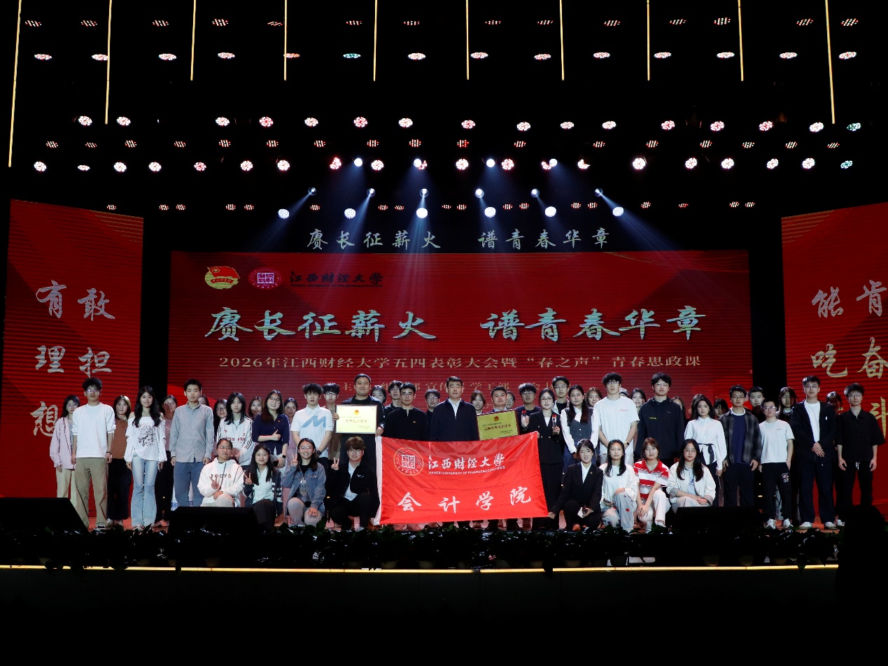 4月27日,江西财经大学五四表彰大会在蛟桥校区大礼堂顺利举行。大会聚焦五四精神传承,表彰全校共青团先进集体与优秀个人,凝聚青年奋进力量。会计学院凭借扎实的团学工作、出色的育人成效,斩获五四红旗团委标兵、五四红旗团委双项重磅荣誉,实现学院建院以来历史性突破,师生个人奖项硕果累累,展现出新时代会计学院师生青年昂扬向上、奋勇争先的精神风貌。